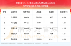 截止2023年12月6日,个股表现方面,能源互联网板块股票当日领跌股为市北高新(600604),该股当日报收4.95,上涨-4.99%,成交量70.17万。*ST红相(300427)以下跌-1.86%紧随其后,该股当日成交量4.6...