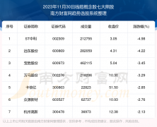 截止2023年11月30日,个股表现方面,动画电影板块股票当日领跌股为拓维信息(002261),该股当日报收16.50,上涨-2.02%,成交量44.58万。琏升科技(300051)以下跌-1.58%紧随其后,该股当日成交量5...