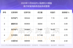 截止2023年11月30日,个股表现方面,PLC股票当日领跌股为双杰电气(300444),该股当日报收7.15,上涨-4.92%,成交量68.25万。睿能科技(603933)以下跌-3.00%紧随其后,该股当日成交量3.22万。此外,...
