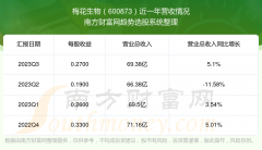 一、梅花生物(600873)股票营收情况 财报显示,2023年第三季度梅花生物营收69.38亿元,同比增长5.1%,净利润7.9亿元,同比增长-9.05%。 梅花生物股票近一年营收情况如下表: ...