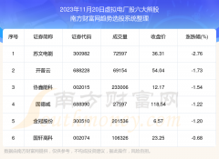截止2023年11月20日,个股表现方面,虚拟电厂股当日领跌股为苏文电能(300982),该股当日报收36.31,上涨-2.76%,成交量7.26万。开普云(688228)以下跌-1.73%紧随其后,该股当日成交量6.92万。此外...
