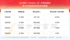 一、光大银行(601818)股票业绩情况 光大银行2023年第三季度公司实现营业收入357.1亿元,同比-8.02%;归母净利润136.18亿元,同比2.45%。 光大银行股票近一年营收情况如下表: ...