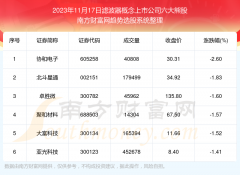 截止2023年11月17日,个股表现方面,电力股当日领跌股为东方环宇(603706),该股当日报收18.13,上涨-2.63%,成交量10.62万。广安爱众(600979)以下跌-1.68%紧随其后,该股当日成交量51.73万。此外,...