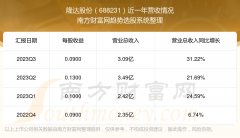 一、隆达股份(688231)股票营收情况 财报显示,2023年第三季度隆达股份营收3.09亿元,同比增长31.22%,净利润2229.68万元,同比增长8.42%。 隆达股份股票近一年营收情况如下表:...