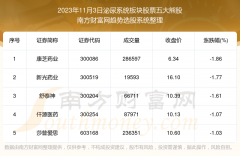 截止2023年11月3日,个股表现方面,泌尿系统板块股票当日领跌股为康芝药业(300086),该股当日报收6.34,上涨-1.86%,成交量28.66万。新光药业(300519)以下跌-1.77%紧随其后,该股当日成交量1.9...
