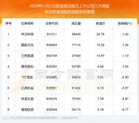 截止2023年11月3日,个股表现方面,旅游酒店概念上市公司当日领跌股为华立科技(301011),该股当日报收20.76,上涨-1.42%,成交量3.84万。国脉文化(600640)以下跌-1.34%紧随其后,该股当日成交量...