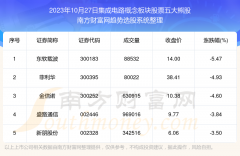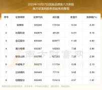截止2023年10月27日,个股表现方面,民族品牌股当日领跌股为宝莱特(300246),该股当日报收10.64,上涨-6.09%,成交量17.31万。长缆科技(002879)以下跌-5.16%紧随其后,该股当日成交量4.91万。此外...