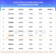 截止2023年10月30日,个股表现方面,水力发电概念股票当日领跌股为钱江水利(600283),该股当日报收13.65,上涨-5.01%,成交量17.19万。江苏新能(603693)以下跌-4.34%紧随其后,该股当日成交量8...