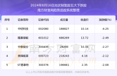 截止2024年8月16日,个股表现方面,光伏制氢股当日领跌股为中材科技(002080),该股当日报收10.14,上涨-4.25%,成交量18.88万。隆基绿能(601012)以下跌-2.49%紧随其后,该股当日成交量68.63万。此...