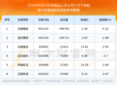 截止2024年8月16日,个股表现方面,奶制品上市公司当日领跌股为东峰集团(601515),该股当日报收2.36,上涨-5.22%,成交量39.68万。皇氏集团(002329)以下跌-2.98%紧随其后,该股当日成交量24.67万...