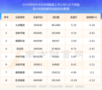 截止2024年8月16日,个股表现方面,合同能源上市公司当日领跌股为九洲集团(300040),该股当日报收5.33,上涨-5.16%,成交量46.15万。双良节能(600481)以下跌-2.61%紧随其后,该股当日成交量16....