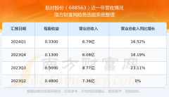 一、航材股份(688563)股票营收情况 航材股份发布2024年第一季度财报。实现总营收6.79亿元,同比增长16.52%;扣非净利润同比增长5.64%至1.28亿元。 航材股份股票近一年营收情况如...