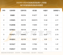 截止2023年10月24日,个股表现方面,控制系统股票当日领跌股为英威腾(002334),该股当日报收8.20,上涨-5.96%,成交量51.03万。江特电机(002176)以下跌-4.17%紧随其后,该股当日成交量302.01万。此...