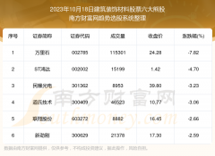 截止2023年10月18日,个股表现方面,建筑装饰材料股票当日领跌股为万里石(002785),该股当日报收24.28,上涨-7.82%,成交量11.53万。ST鸿达(002002)以下跌-4.70%紧随其后,该股当日成交量1.52万。...