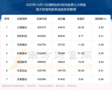 截止2023年10月13日,个股表现方面,高性能纤维股当日领跌股为南山智尚(300918),该股当日报收11.05,上涨-3.91%,成交量4.1万。吉林化纤(000420)以下跌-2.83%紧随其后,该股当日成交量21.2万。此...