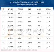 截止2023年10月13日,个股表现方面,软件服务(SaaS)概念股票当日领跌股为博思软件(300525),该股当日报收14.00,上涨-4.89%,成交量13.47万。*ST左江(300799)以下跌-4.41%紧随其后,该股当日成交量...