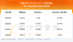 一、吉鑫科技(601218)股票营收情况 吉鑫科技2023年第三季度财报显示,公司主营收入4.1亿元,同比-21.35%;归母净利润4019.09万元,同比81.22%。 吉鑫科技股票近一年营收情况如下...