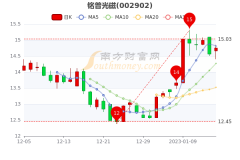 1月16日消息,铭普光磁5日内股价下跌3.23%,该股最新报14.730元涨1.24%,成交6849.66万元,换手率3.12%。 市场表现方面,电感概念股平均上涨2.27%,上涨的有21只,涨幅居前的有...