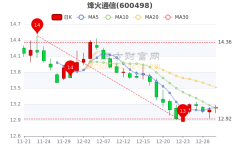 12月30日收盘消息,烽火通信最新报13.140元,涨0.38%。成交量172.3万手,总市值为155.91亿元。 从盘面上看,所属的路由器概念股收盘涨,截至发稿,国脉科技领涨,惠程科技、...