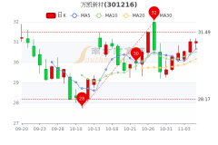 11月7日消息,万凯新材开盘报价30.95元,收盘于31.030元。5日内股价上涨2.42%,总市值为106.56亿元。 所属橡塑概念股盘后涨,截至发稿,泛亚微透领涨,王子新材、安利股份、...