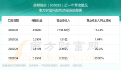 一、美邦股份(605033)股票营收情况 2023年第三季度归属上市公司股东的净利润:-341.99万,同比增长35.92%。 美邦股份股票近一年营收情况如下表: 按照南方财富网趋势选...