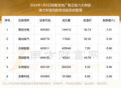 截止2024年1月5日,个股表现方面,核聚变电厂概念股当日领跌股为联创光电(600363),该股当日报收30.74,上涨-7.91%,成交量14.45万。国光电气(688776)以下跌-5.93%紧随其后,该股当日成交量1.7...