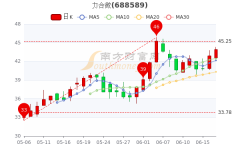 6月17日收盘消息,力合微5日内股价上涨3.37%,截至15时收盘,该股报43.9元,涨2.38%,总市值为43.9亿元。 电视芯片概念,整体上涨0.55%。领涨股为力合微(688589),领跌股为晶...