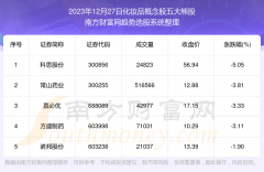 截止2023年12月27日,个股表现方面,化妆品概念概念股当日领跌股为科思股份(300856),该股当日报收56.94,上涨-5.05%,成交量2.48万。常山药业(300255)以下跌-3.81%紧随其后,该股当日成交量51...