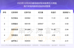 截止2023年12月26日,个股表现方面,超导线材板块股票当日领跌股为东方钽业(000962),该股当日报收11.51,上涨-3.68%,成交量7.02万。永鼎股份(600105)以下跌-3.52%紧随其后,该股当日成交量22...