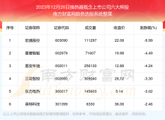 截止2023年12月26日,个股表现方面,换热器概念上市公司当日领跌股为宏盛股份(603090),该股当日报收22.08,上涨-9.99%,成交量11.13万。雷赛智能(002979)以下跌-4.49%紧随其后,该股当日成交量...