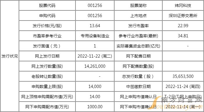 2分钟了解:炜冈科技(001256)新股发行状况,下文就随老张来简单的了解一下吧。
