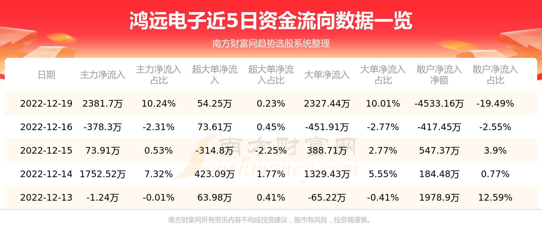 以上就是网络对股票配资炒股 鸿远电子个股资金流向查询(12月19日)的解读(https://www.youge168.com/news-pzhq/45202.html)希望可以帮助您。