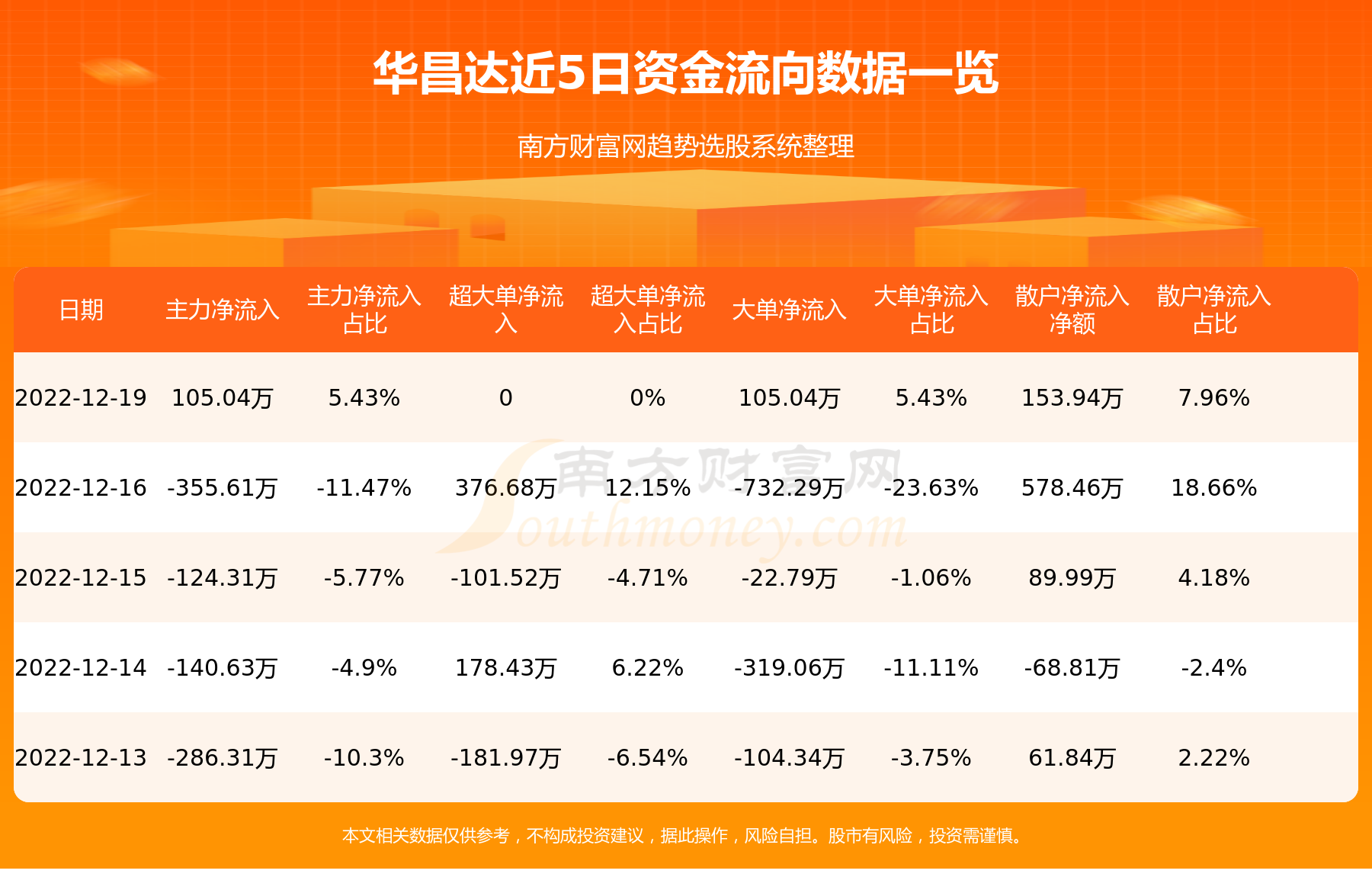 以上就是网络对天载配资 12月19日资金流向统计:华昌达资金流向一览表的解读(https://www.youge168.com/news-pzhq/45220.html)希望可以帮助您。