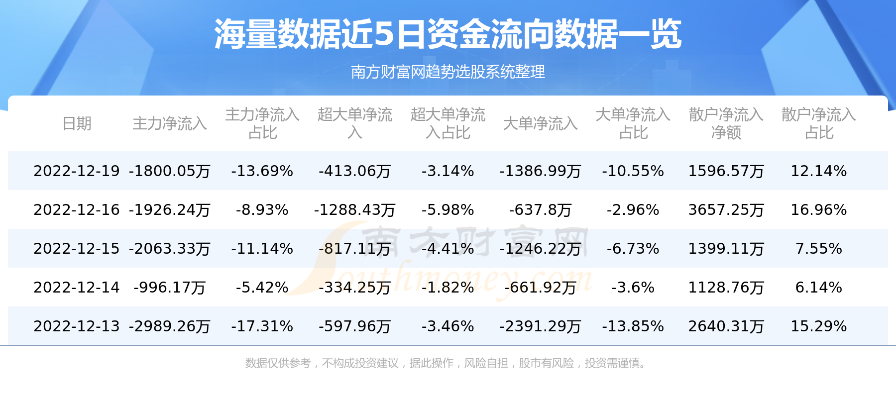 以上就是网络对股票配资门户 12月19日资金流向:海量数据资金流向查询的解读(https://www.youge168.com/news-pzhq/45230.html)希望可以帮助您。