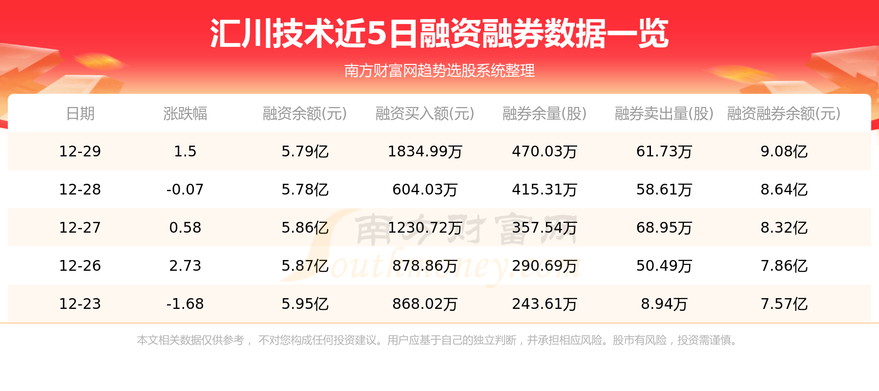 汇川技术12月29日融券信息显示,融资方面,当日融资买入1834.99万元,融资偿还1749.41万元,融资净买额85.57万元。融券方面,融券卖出61.73万股,融券偿还7.01万股,融券余量470.03万股,融券余额3.28亿元。融资融券余额9.08亿元。近5日融资融券数据一览见下表: