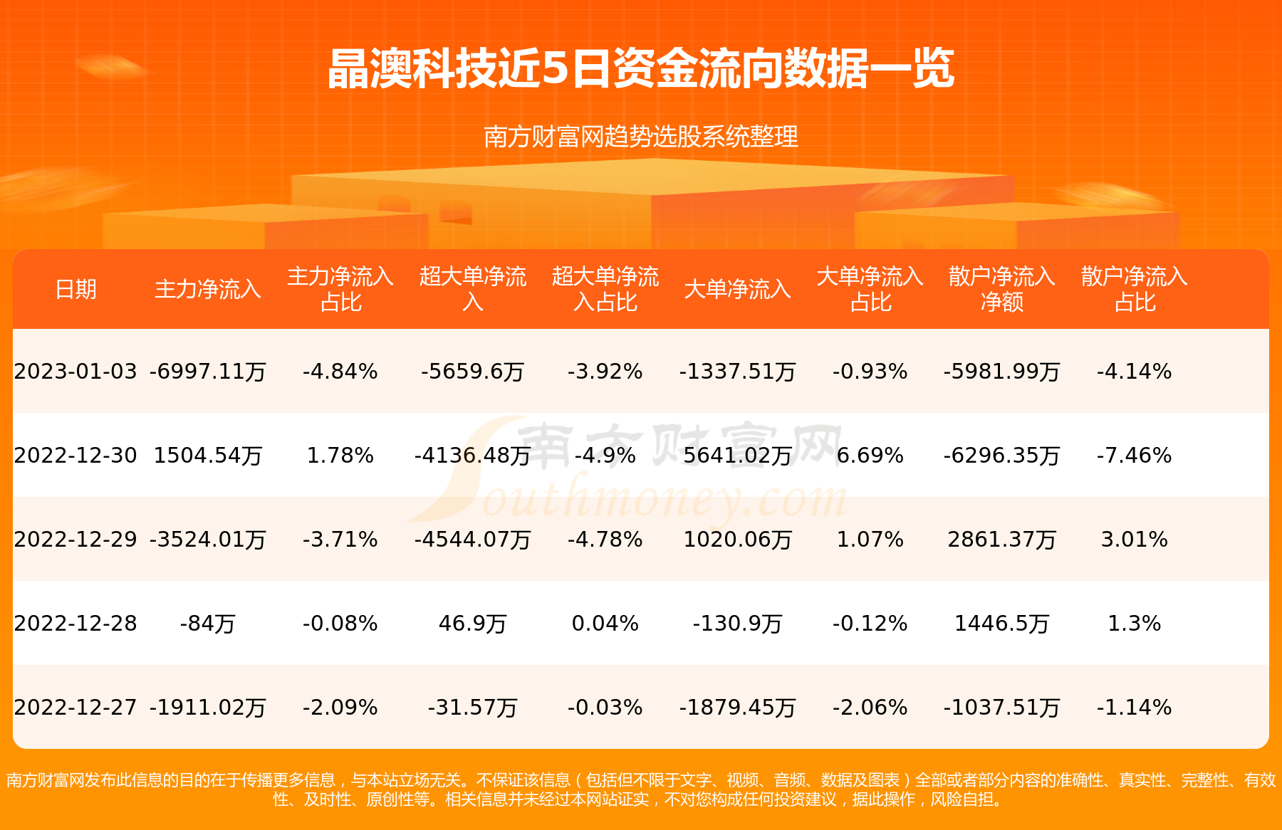 1月3日消息,晶澳科技1月3日主力净流出6997.11万元,超大单净流出5659.6万元,大单净流出1337.51万元,散户净流出5981.99万元。