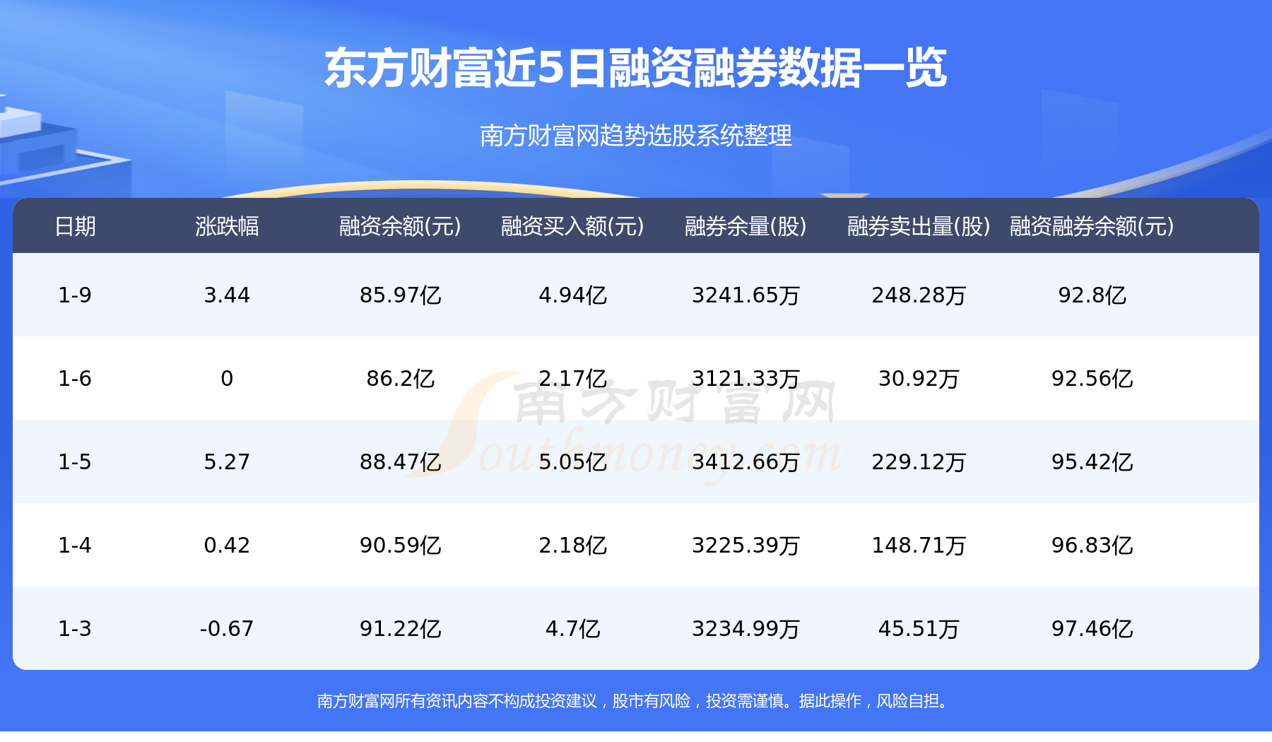 1月9日东方财富融券信息显示,融资方面,当日融资买入4.94亿元,融资偿还5.17亿元,融资净买额-2352.43万元。融券方面,融券卖出248.28万股,融券偿还127.96万股,融券余量3241.65万股,融券余额6.83亿元。融资融券余额92.8亿元。近5日融资融券数据一览见下表: