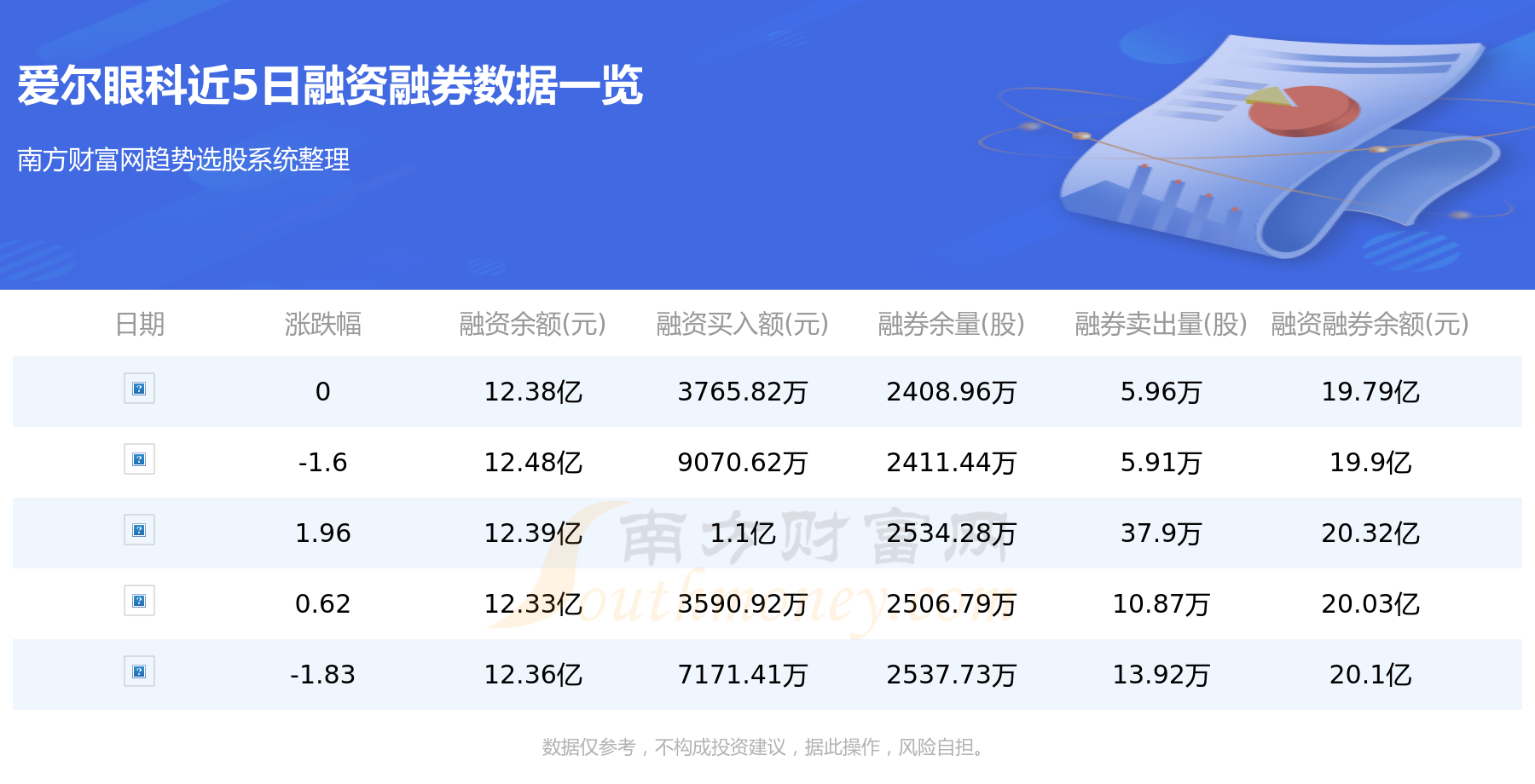 爱尔眼科1月9日融券信息显示,融资方面,当日融资买入3765.82万元,融资偿还4744.59万元,融资净买额-978.77万元。融券方面,融券卖出5.96万股,融券偿还8.44万股,融券余量2408.96万股,融券余额7.42亿元。融资融券余额19.79亿元。近5日融资融券数据一览见下表: