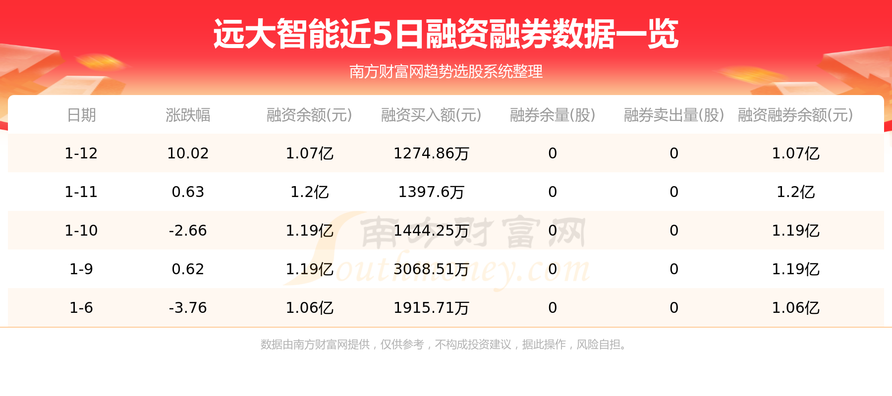 远大智能1月12日融券信息显示,融资方面,当日融资买入1274.86万元,融资偿还2565.6万元,融资净买额-1290.74万元。近5日融资融券数据一览见下表: