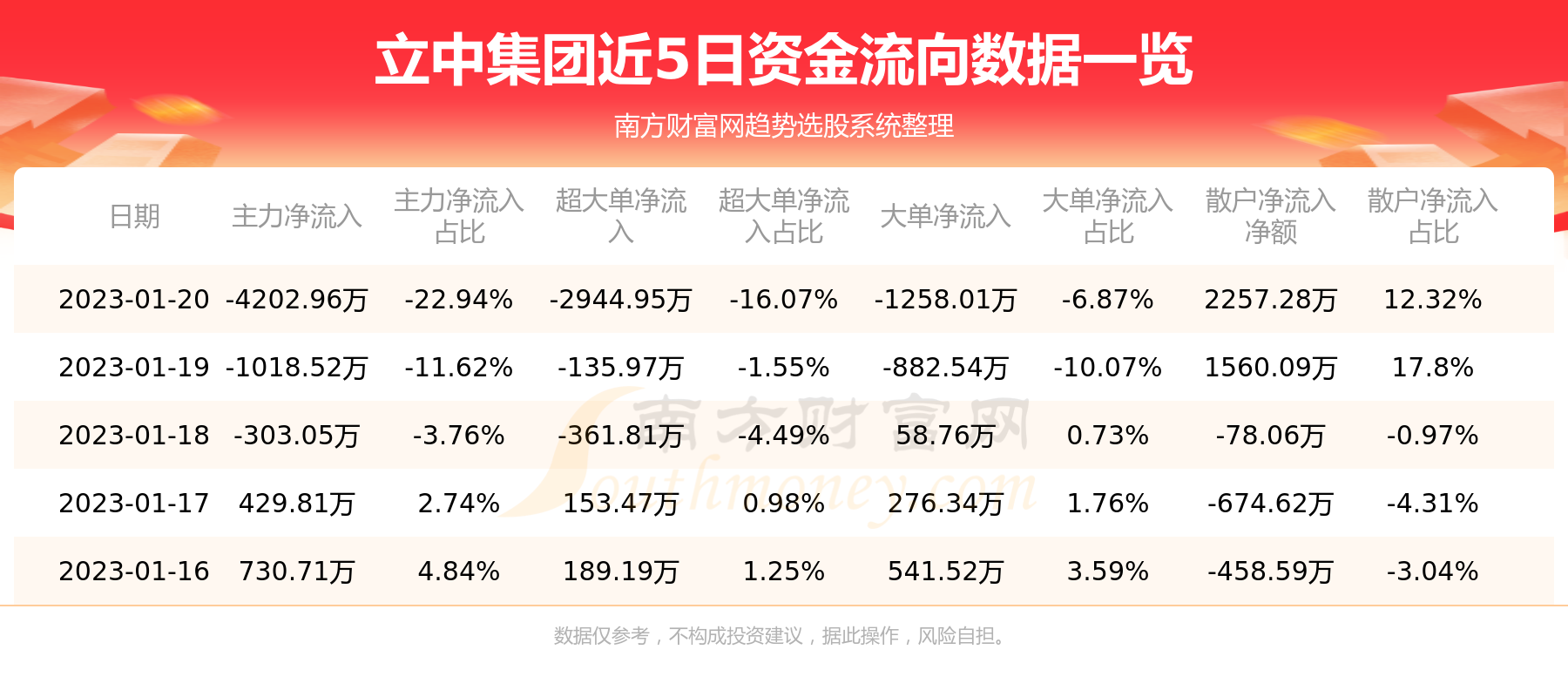 1月20日消息,立中集团主力资金净流出4202.96万元,超大单资金净流出2944.95万元,散户资金净流入2257.28万元。