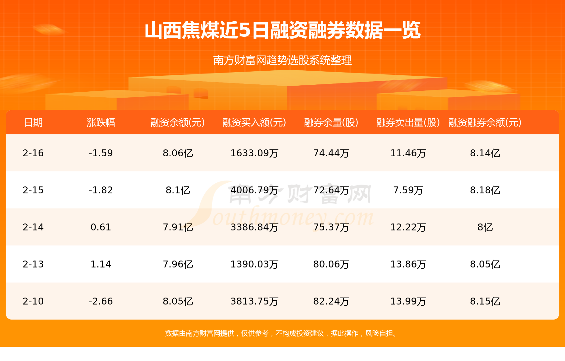 2月16日山西焦煤融券信息显示,融资方面,当日融资买入1633.09万元,融资偿还2067.06万元,融资净买额-433.97万元。融券方面,融券卖出11.46万股,融券偿还9.67万股,融券余量74.44万股,融券余额831.51万元。融资融券余额8.14亿元。近5日融资融券数据一览见下表: