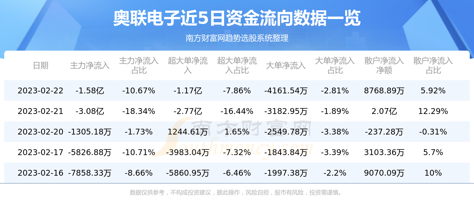 以上就是网络对配资知识网 奥联电子2月22日主力资金净流出1.58亿元的解读(https://www.youge168.com/news-pzhq/47097.html)希望可以帮助您。