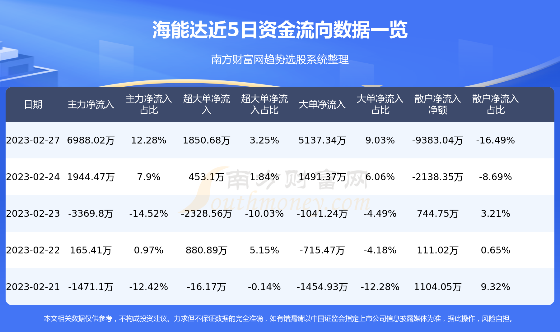 以上就是网络对配资中心 海能达(002583)2月27日个股资金流向的解读(https://www.youge168.com/news-pzhq/47253.html)希望可以帮助您。