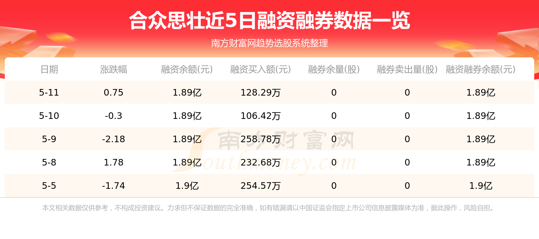 5月11日合众思壮融券信息显示,融资方面,当日融资买入128.29万元,融资偿还81.91万元,融资净买额46.38万元。