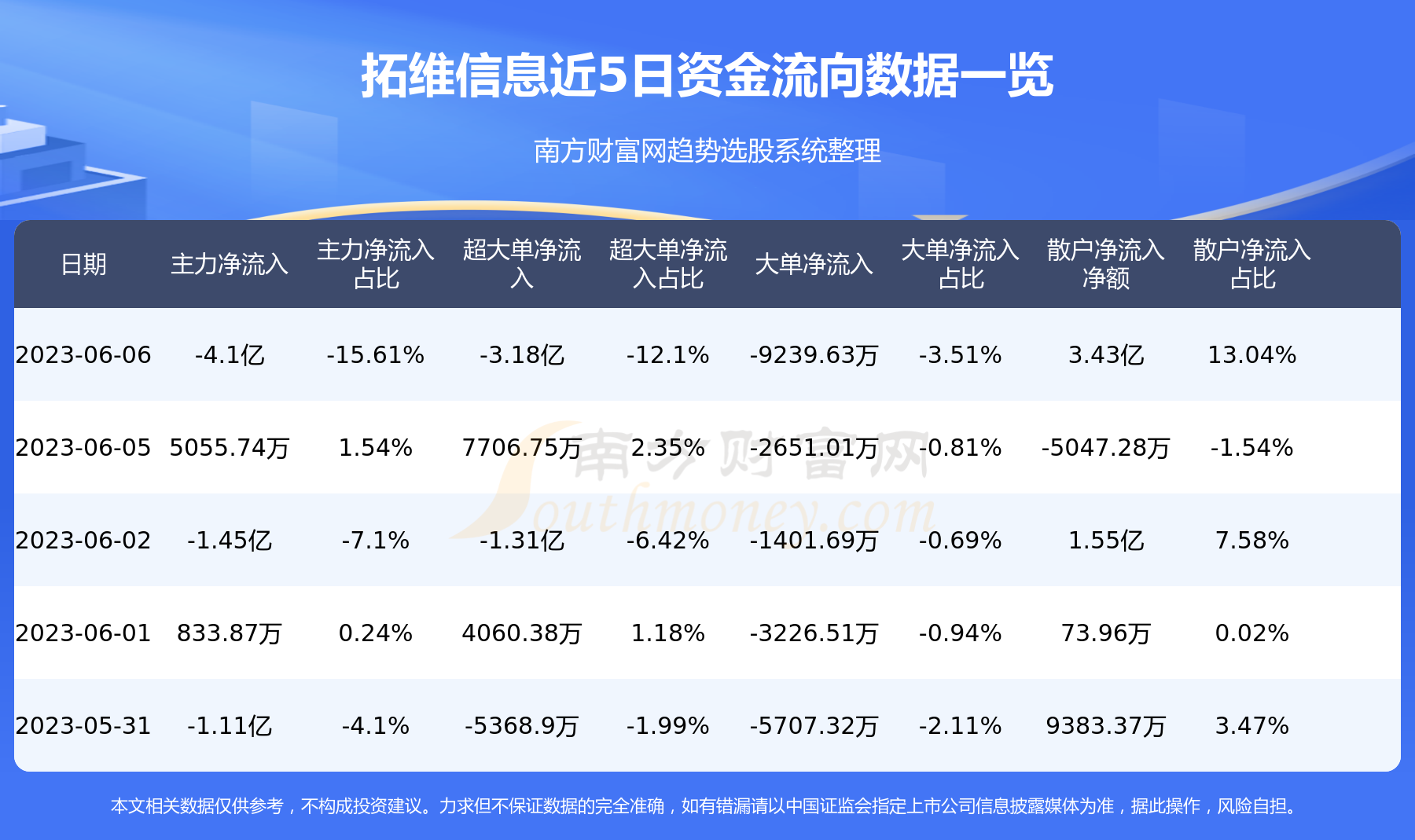 以上就是网络对最好股票配资公司 6月6日资金流向一览表|拓维信息(002261)的解读(https://www.youge168.com/news-pzhq/47906.html)希望可以帮助您。