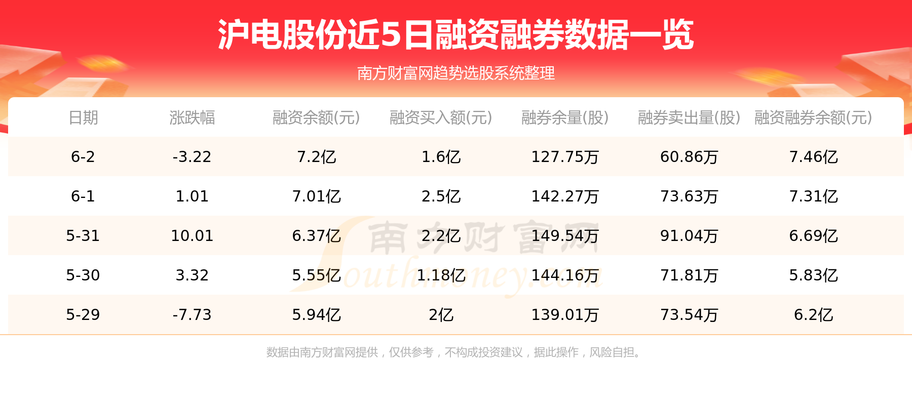 6月2日沪电股份融券信息显示,融资方面,当日融资买入1.6亿元,融资偿还1.4亿元,融资净买额1919.39万元。融券方面,融券卖出60.86万股,融券偿还75.39万股,融券余量127.75万股,融券余额2608.59万元。融资融券余额7.46亿元。近5日融资融券数据一览见下表: