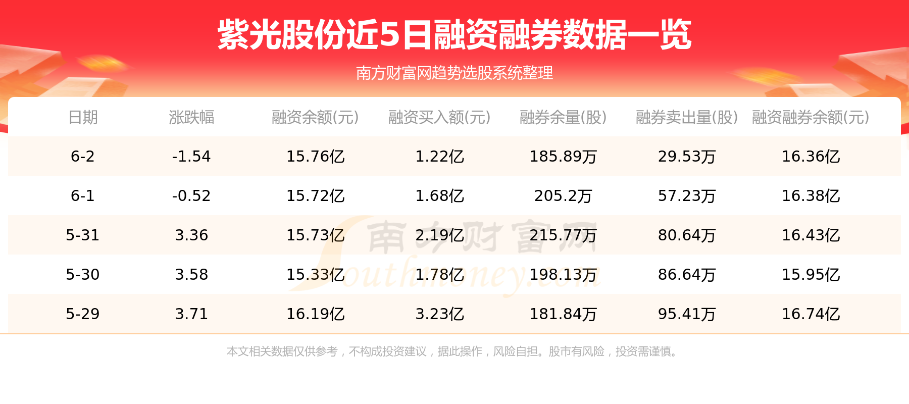6月2日紫光股份融券信息显示,融资方面,当日融资买入1.22亿元,融资偿还1.18亿元,融资净买额438.89万元。融券方面,融券卖出29.53万股,融券偿还48.84万股,融券余量185.89万股,融券余额5939.19万元。融资融券余额16.36亿元。近5日融资融券数据一览见下表: