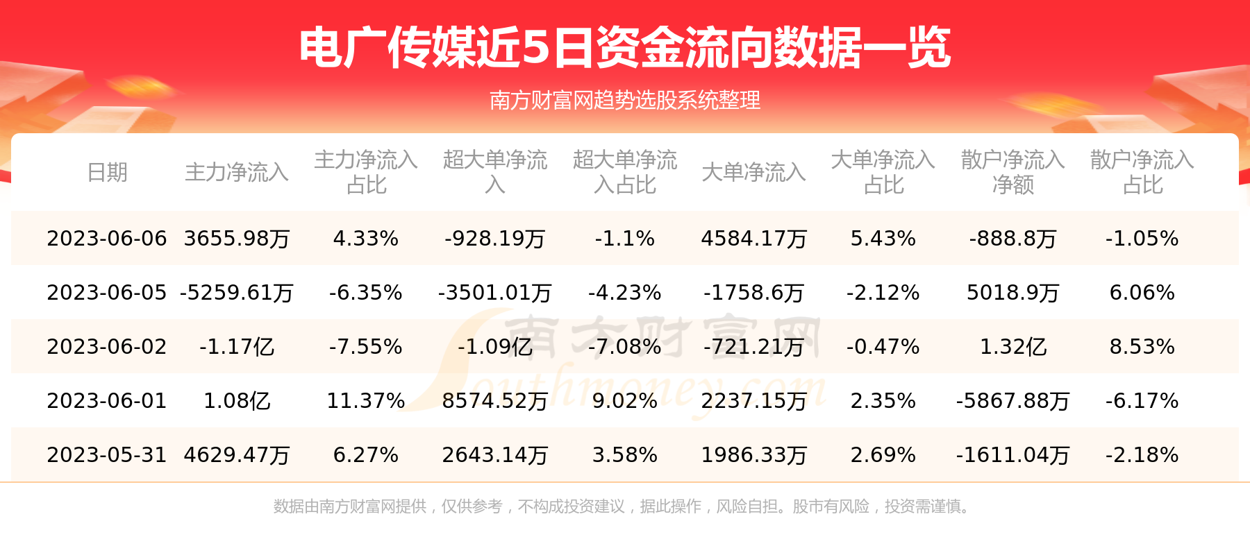 以上就是网络对期货配资公司 6月6日资金流向复盘:电广传媒资金流向一览表的解读(https://www.youge168.com/news-pzhq/47932.html)希望可以帮助您。