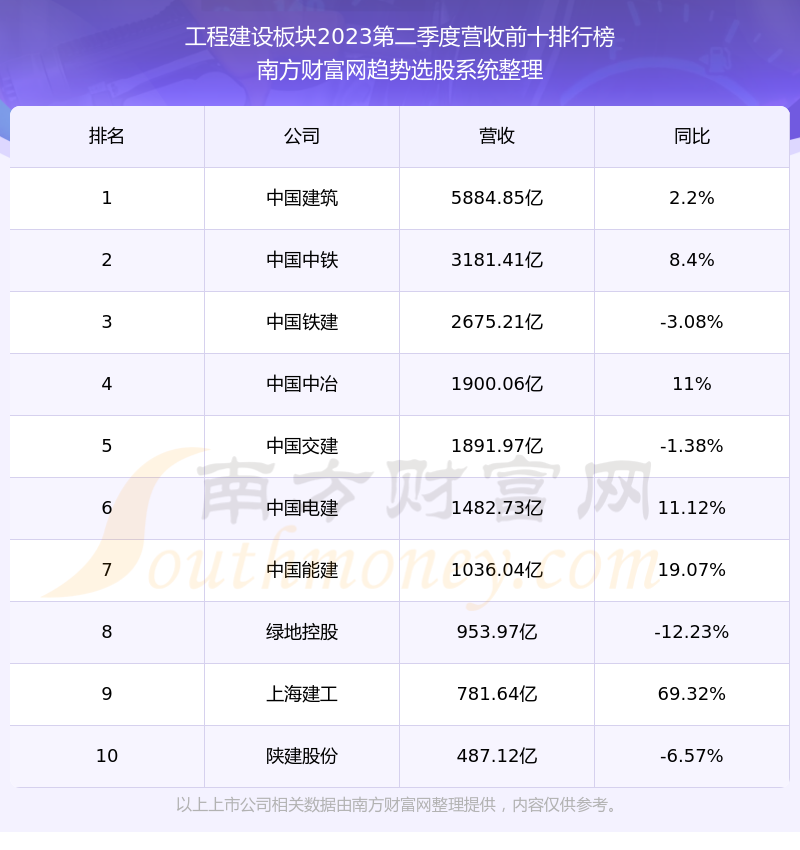 按照南方财富网趋势选股系统统计,该股所属板块为工程建设板块,该板块共有126只股票,龙建股份2023第二季度营收在该板块中排名为第30名,该板块2023第二季度营收排名前十的股票如下表: