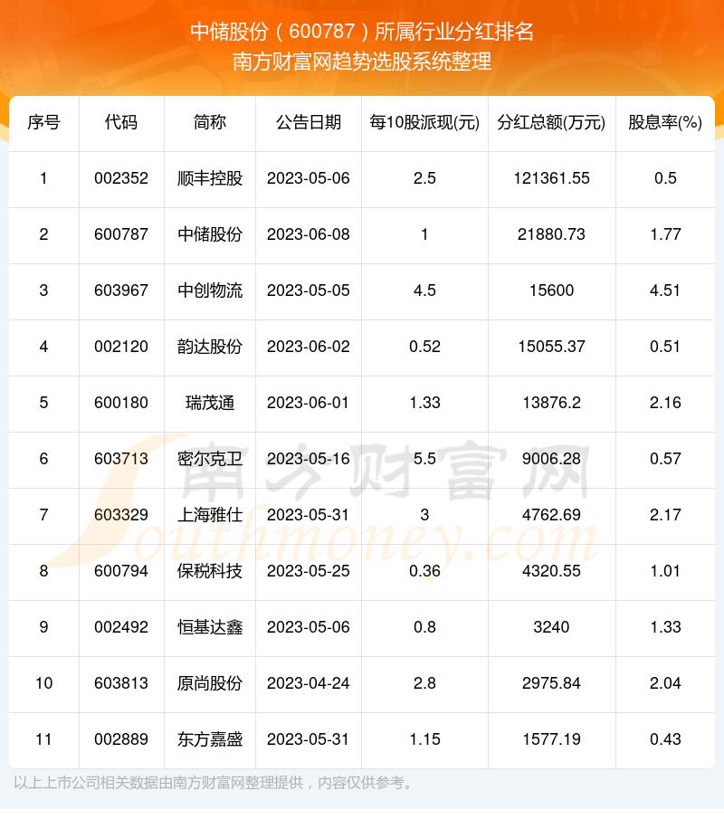 以上就是网络对配资炒股 中储股份600787每年分红怎么样_所属行业股票分红排名情况的解读(https://www.youge168.com/news-pzhq/48135.html)希望可以帮助您。